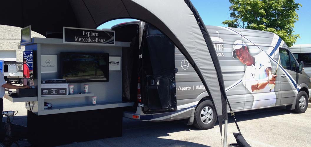 Our Bolt-In system is easy to use and bolts into vehicles for a custom display without harming the leased vehicle. These are simply the top custom event fabrication vehicles. They work with a proprietary slide system that transforms the vehicle into a truly custom display in minutes. We can build into SUV’s, Sprinters, Vans, Pick-ups, and can incorporate awnings, sampling stations, and interactive displays. These can be leased or purchased.